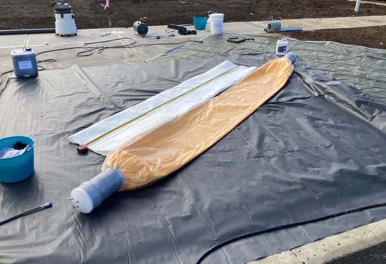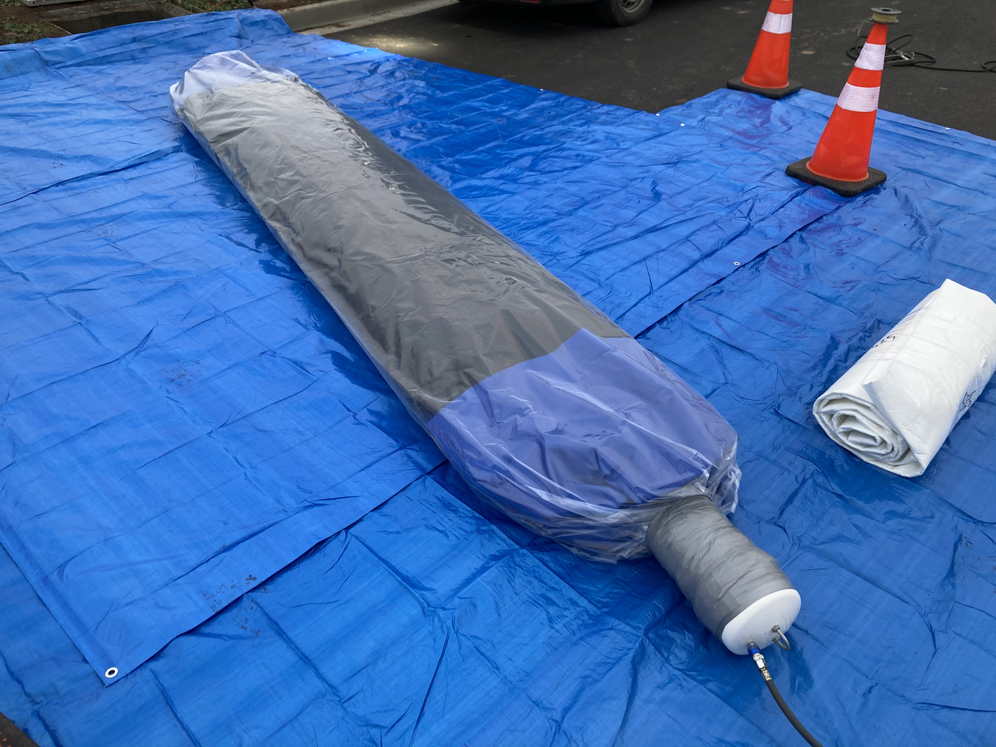 Also constructed in Australia TSE pull in place bladder replacement componentry. are put together by the relining contractor and are able to be shortened. This kit can be reused many times by just changing the disposable outer poly protector bag. Constructed from rubber in the smaller size range or tough vinyl in larger sizes. Lengths can be ordered from 1.5 metres to a custom length that an experienced contractor can manage on site. Air ends come in several sizes depending on the size of the bladder to be constructed.